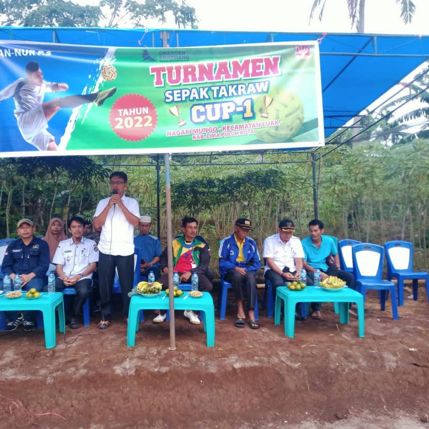 Sambutan Bapak Walinagari Mungo Syaiful Wahid, S.I.P mengatakan, kami dari Pemerintan Nagari menginginkan open turnamen sepak takraw Mungo Cuo I ini berjalan aman dan kondusif dengan tetap menjaga kekompakan antar masyarakat.
